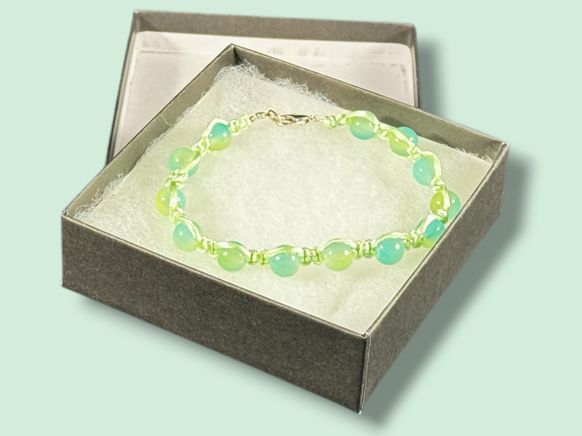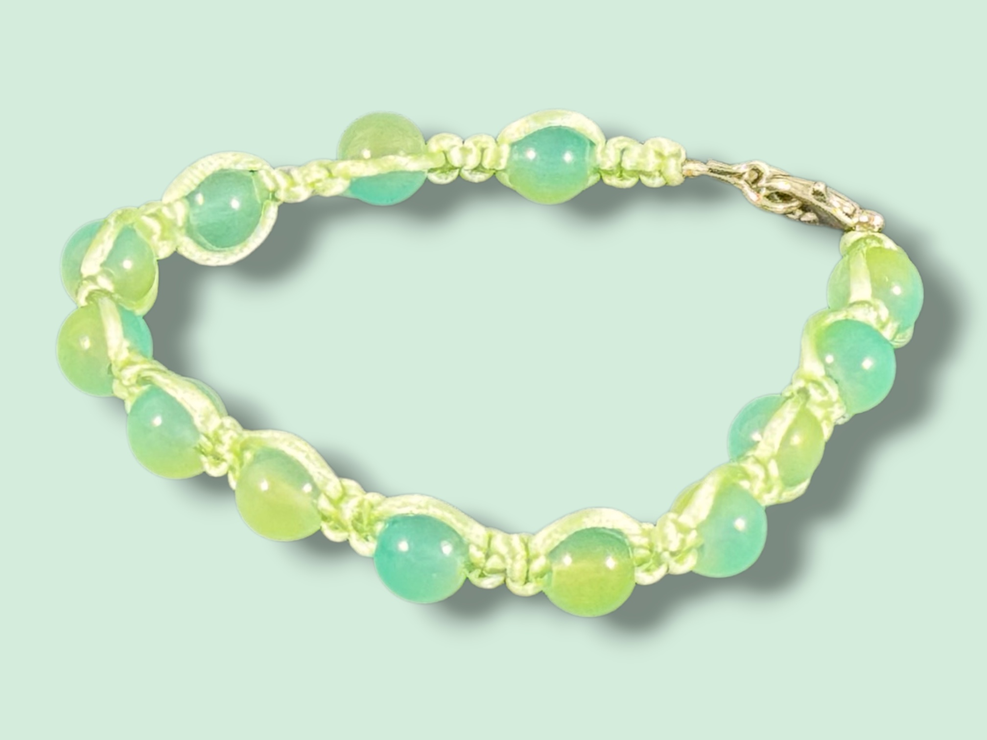 Soft, breezy, and full of charm, this bracelet features light green cord accented with matching glass beads for a cool, calming vibe. The silver lobster clasp adds a polished touch, making it easy to wear and layer. Perfect for adding a hint of nature-inspired style to your everyday look.