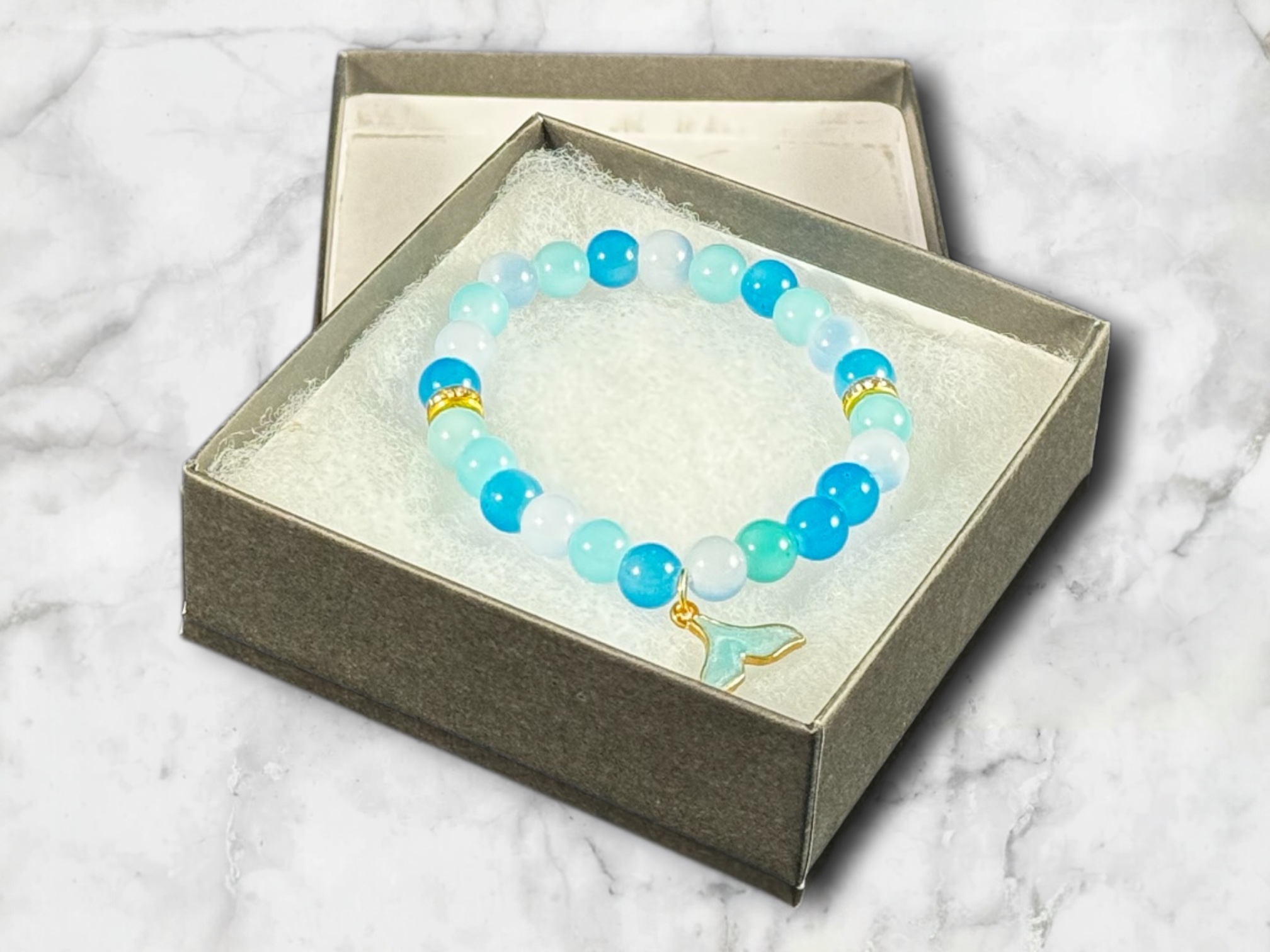 Accented with crystal rondelles and a shimmery mermaid tail charm, it’s the perfect bracelet for someone who finds peace and magic in the water.