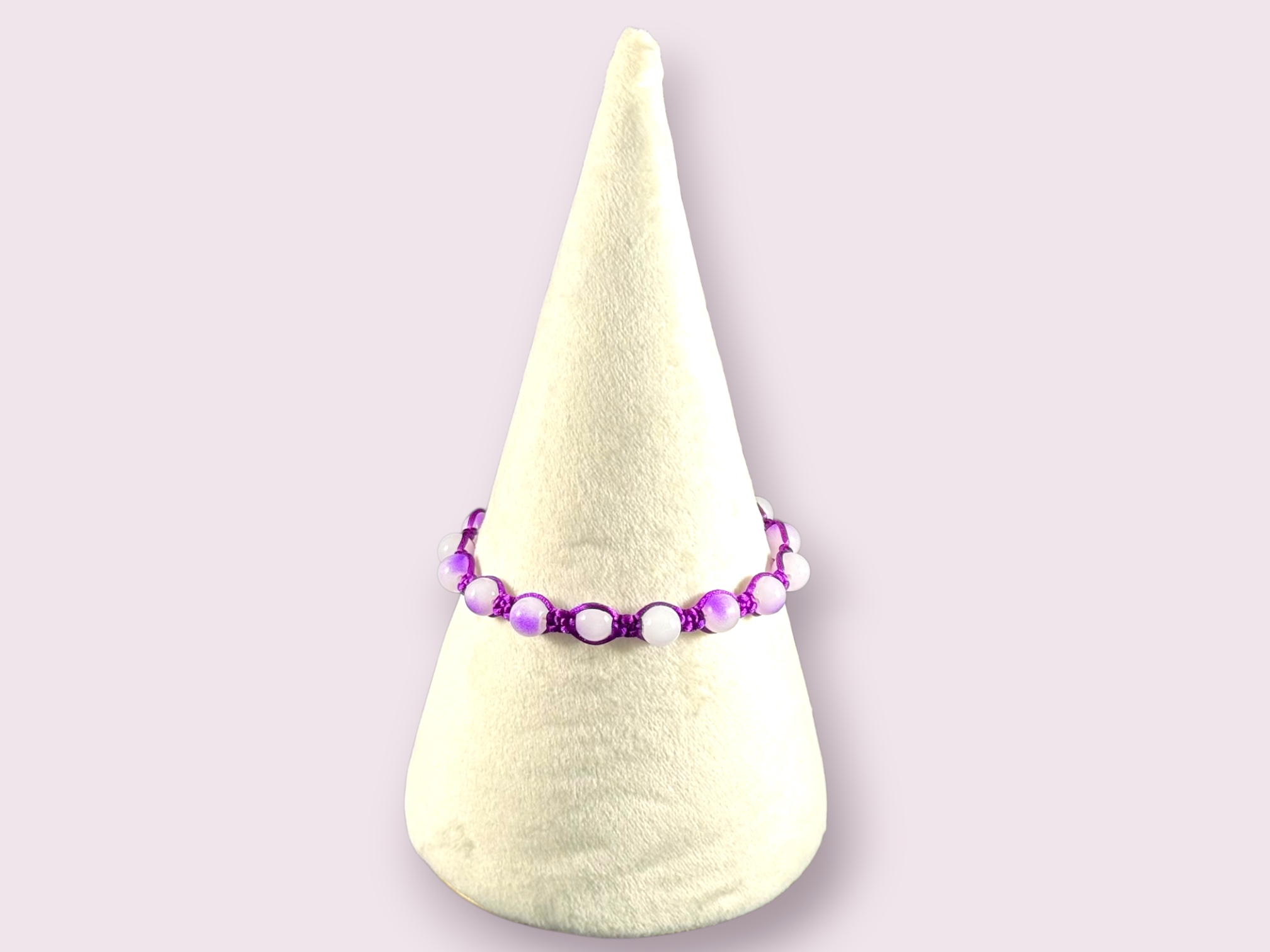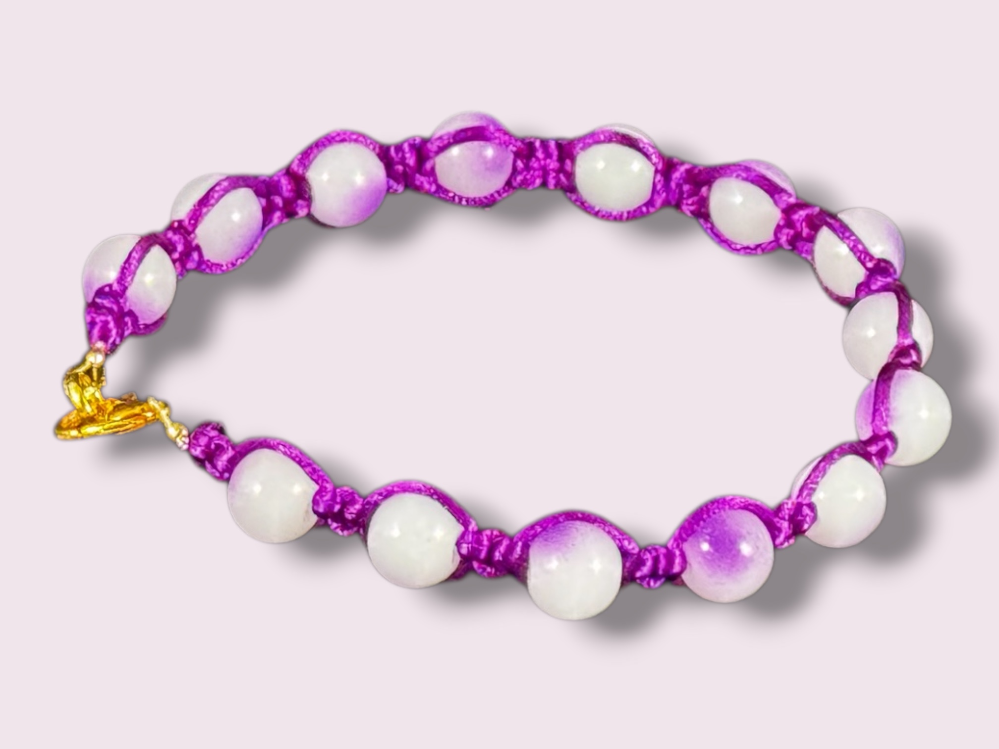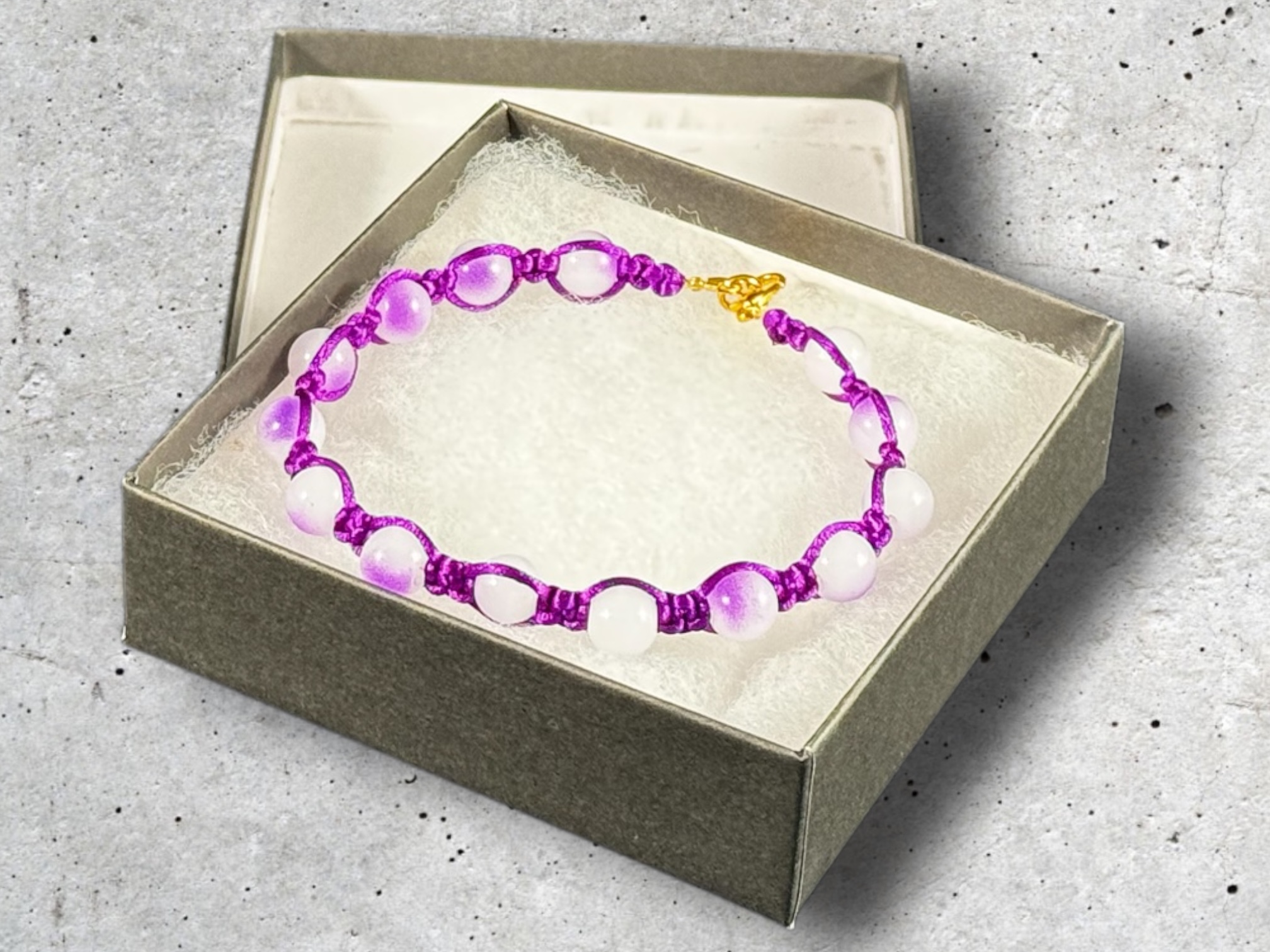 Brighten your day with a touch of playful elegance. This bracelet features rich purple cord paired with soft light purple glass beads for a fresh, feminine look. The gold lobster clasp adds a polished finish, making it easy to wear solo or stacked with your favorites. Light, lovely, and effortlessly stylish—just the right mix of fun and refined.
